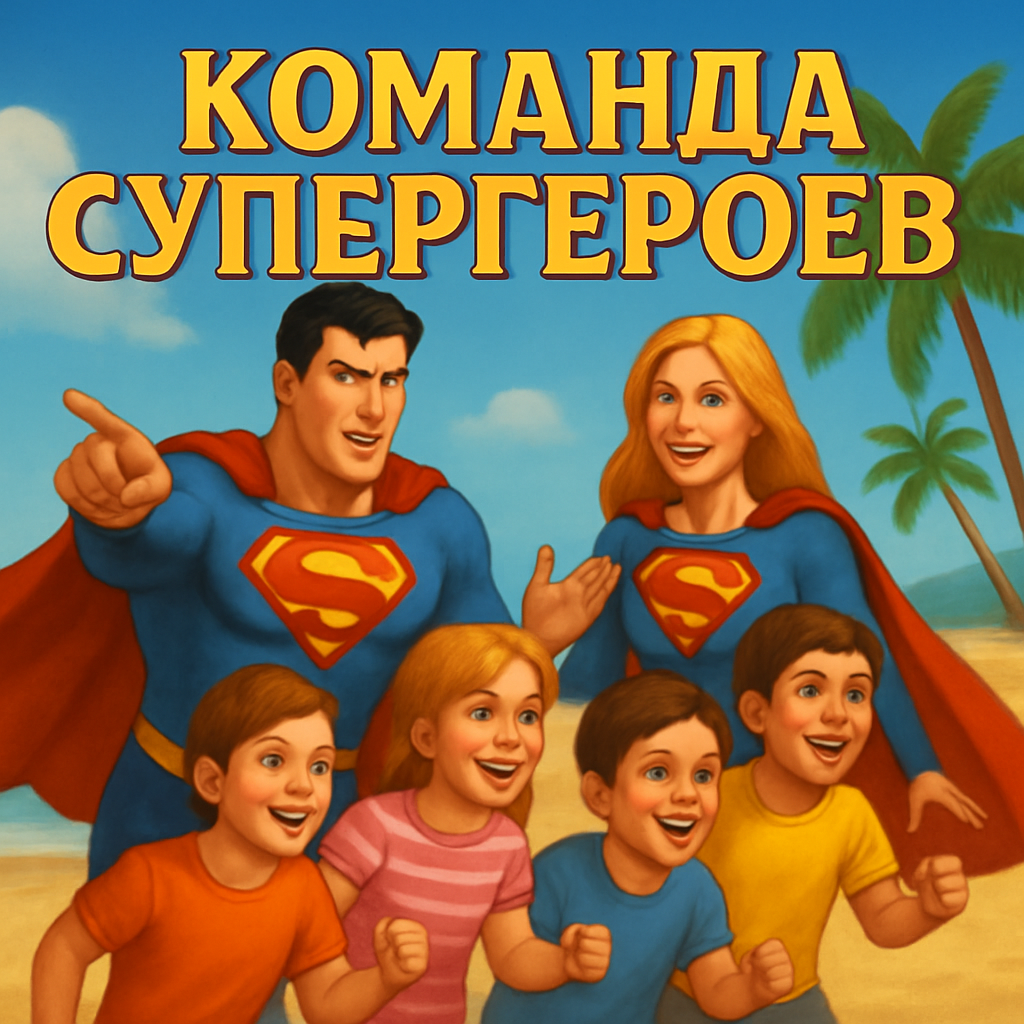 Дети с восторгом закричали в ответ. Они были полны энтузиазма и готовы к приключениям. Супергерои разделили их на команды и начали проводить различные испытания: бег по песку, прыжки через волны и даже соревнования по сбору ракушек на скорость. Каждый конкурс был наполнен смехом и азартом.
