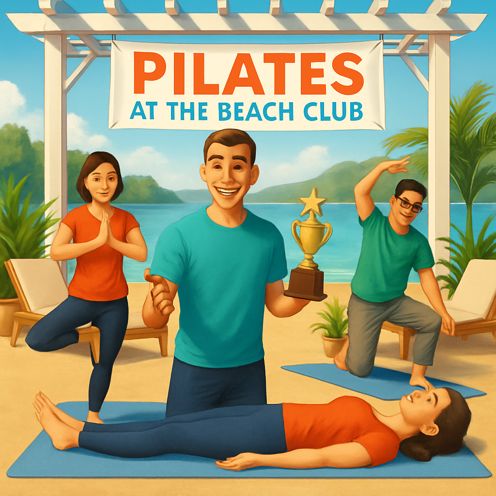 «Пилатес в пляжном клубе у озера» — это энергичное и одновременно расслабляющее занятие для гостей пляжного клуба, которое проводится на свежем воздухе у воды.