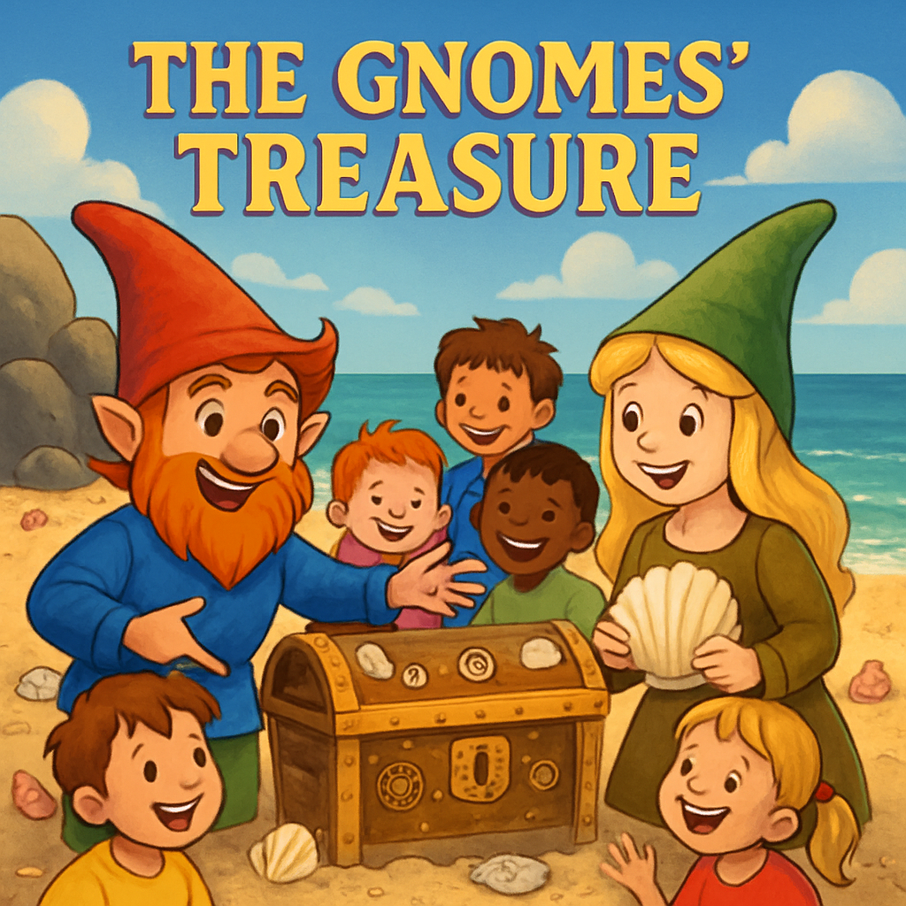 На солнечном пляже, где волны нежно шептали свои секреты, я, рассказчик, наблюдал за тем, как собираются дети. Их радостные голоса наполняли воздух, когда из-за камней появились два гнома — Тили и Мили. Тили, с его яркой шляпой и озорным взглядом, сразу привлек внимание малышей. Он с улыбкой предложил: "Давайте соберем ракушки! У нас будет самая красивая коллекция на всем пляже!" Мили, с доброй улыбкой и светлыми волосами, поддержала друга: "А я расскажу вам о каждой ракушке! Они все имеют свои истории!"